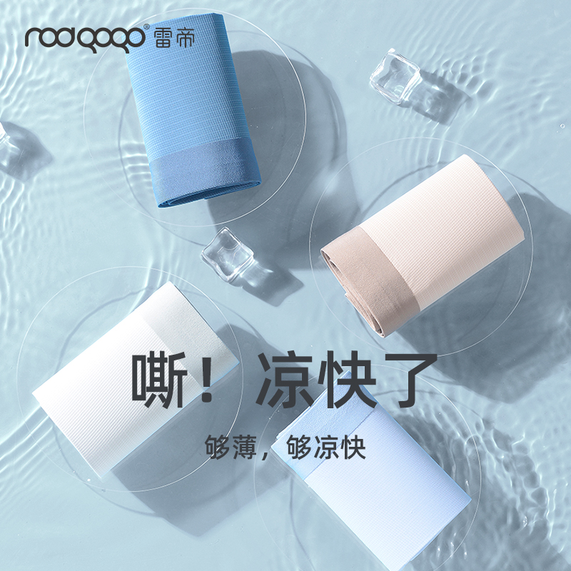男士内裤冰丝条纹薄款透气网孔裆无痕四角裤男生平角短裤头3条装