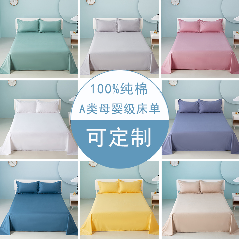 新款A类100床单单件简约1.5米双人纯色全棉学生1.2m单人被单