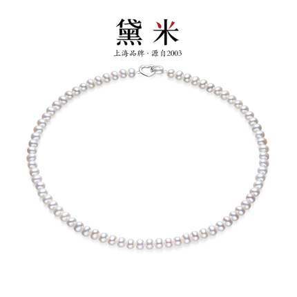 黛米珠宝 5-6mm近圆白色无核淡水珍珠项链锁骨链S925银颈链女SSS