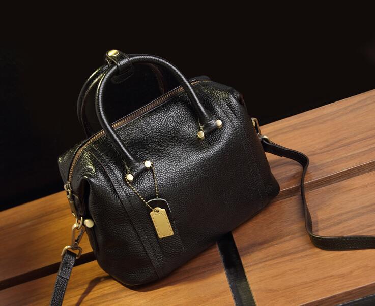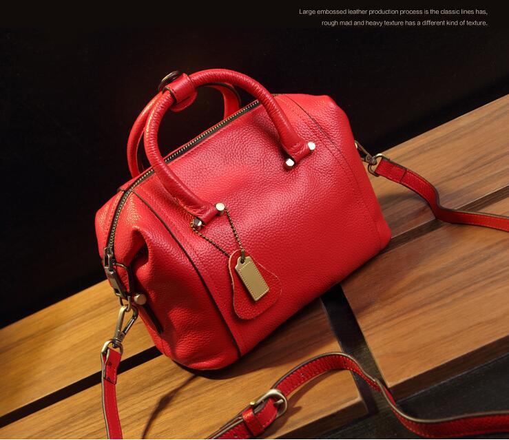 真皮牛皮外贸2023新款欧美时尚波士顿包女包手提单肩斜挎枕头大包