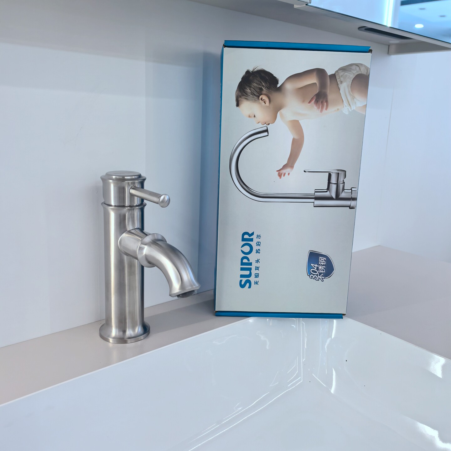 苏泊尔304不锈钢面盆台盆冷热水龙头卫生间浴室柜台上盆加高龙头