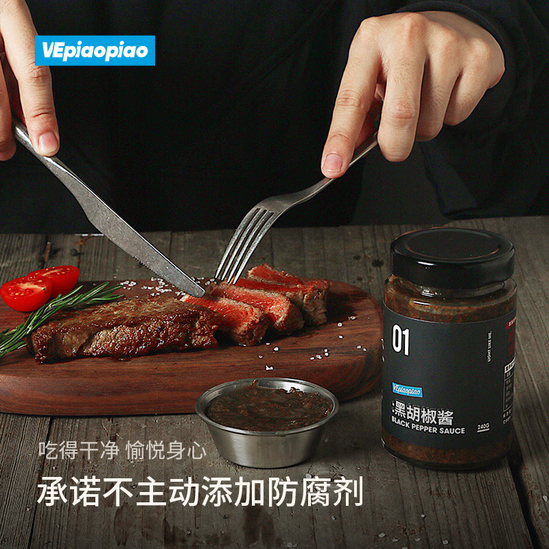 VEpiaopiao黑胡椒酱240g*1瓶牛排酱专用调料低脂黑椒汁意面酱