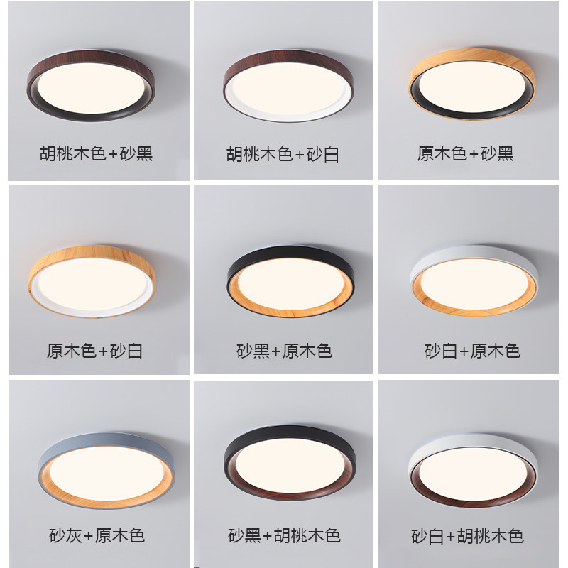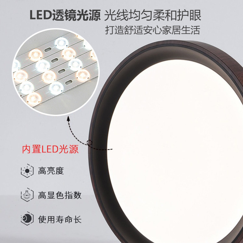 卧室灯胡桃木纹色吸顶灯仿古国风现代简约大气民宿书房间中山灯具