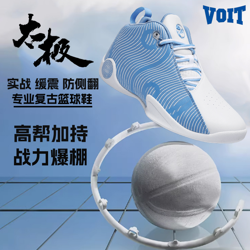 VOIT沃特专业缓震实战篮球鞋男复古太极无极潮流高帮皮面运动鞋男