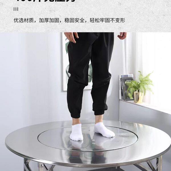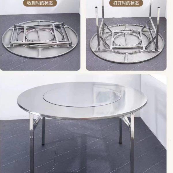 内置转盘不锈钢折叠餐桌饭桌圆桌圆形家用小户型现代简约大圆桌子