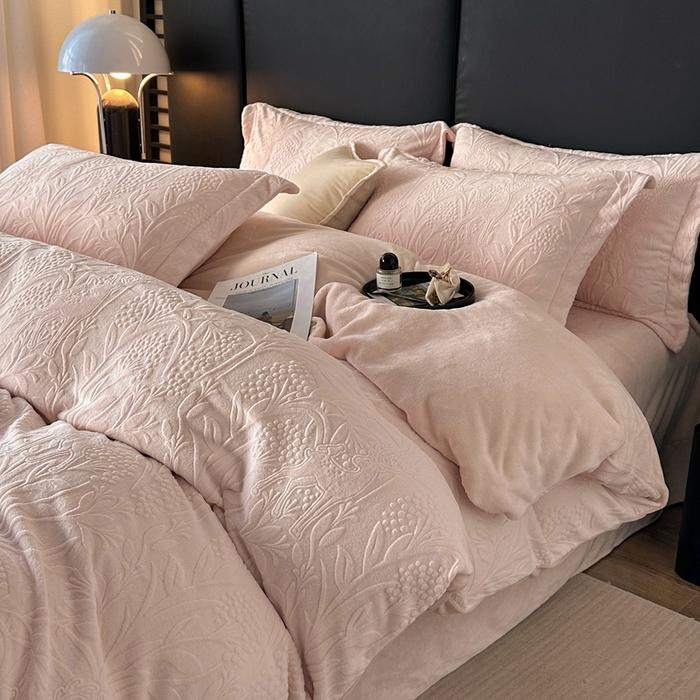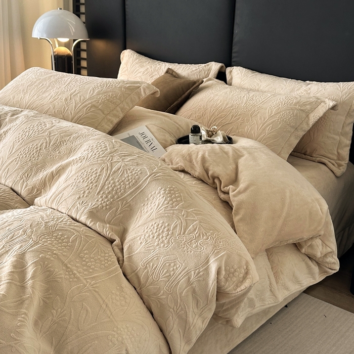 高级感轻奢雕花牛奶绒四件套保暖冬季珊瑚绒被套双面加绒床上用品