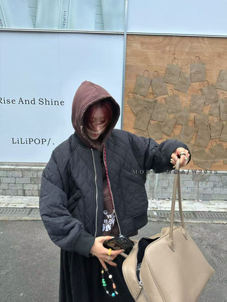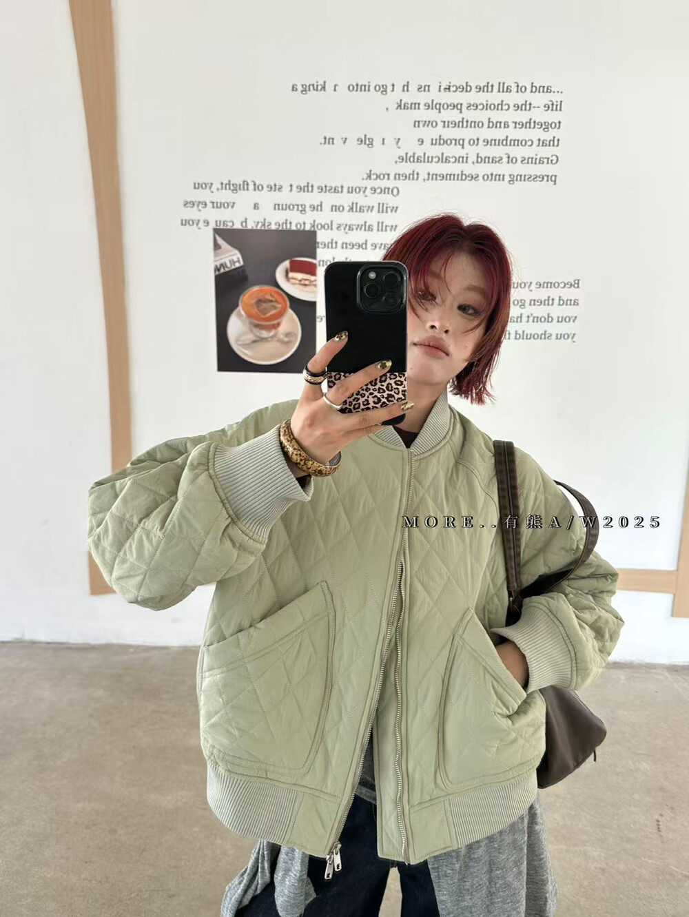 More有熊秋冬新款休闲百搭薄棉上衣棉服外套棒球服女2667