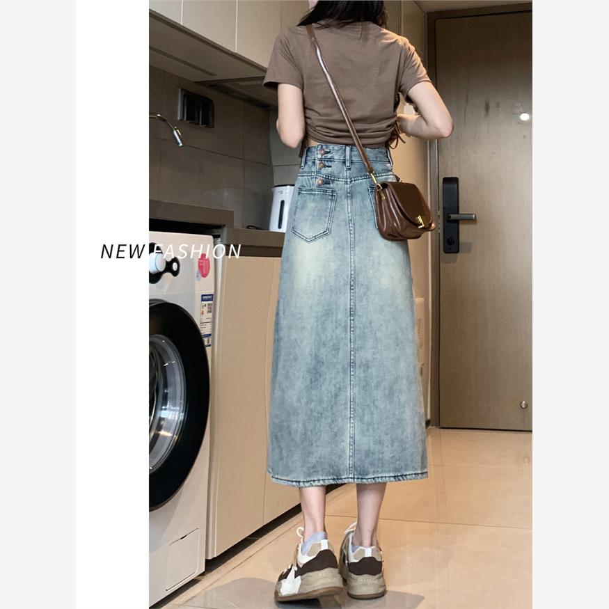 浅色牛仔半身裙女高腰2025新款复古大码直筒宽松a字中长款包臀裙