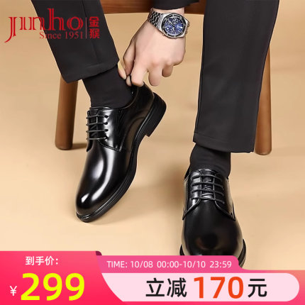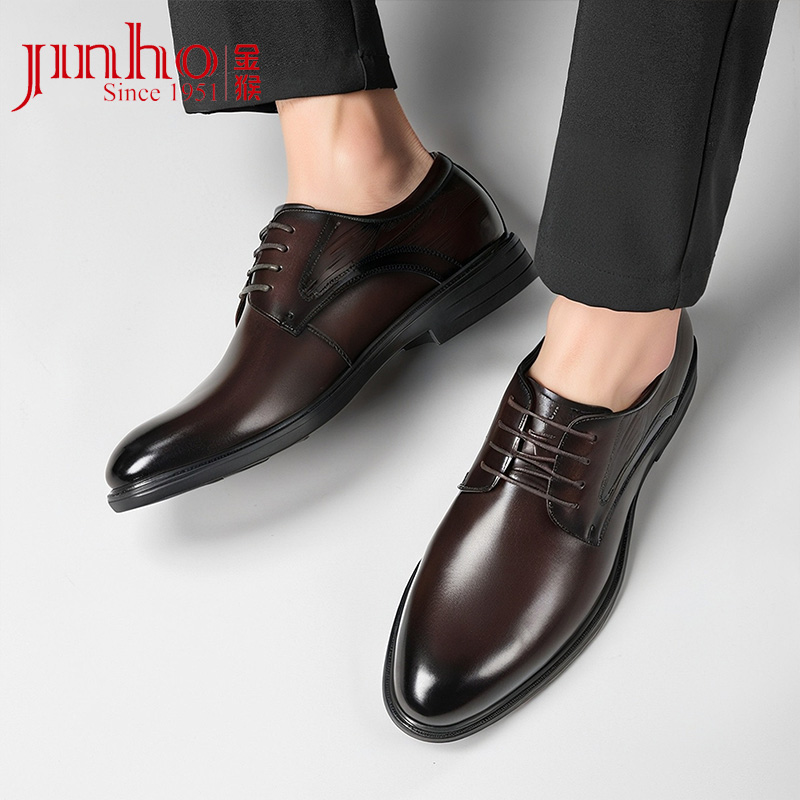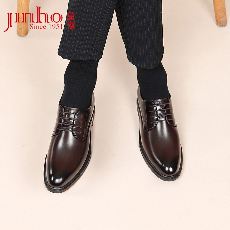 金猴皮鞋男2025秋季新款商务正装系带黑色牛皮英伦风工作通勤鞋