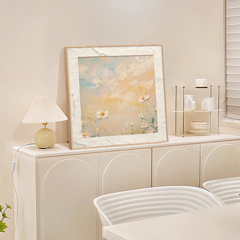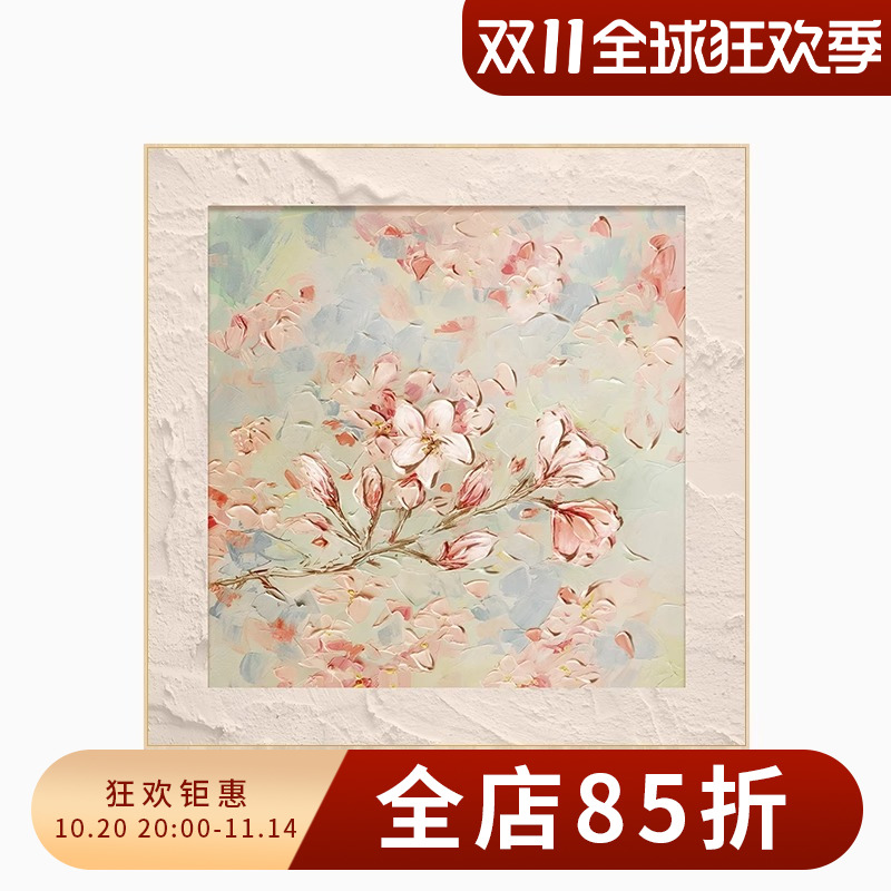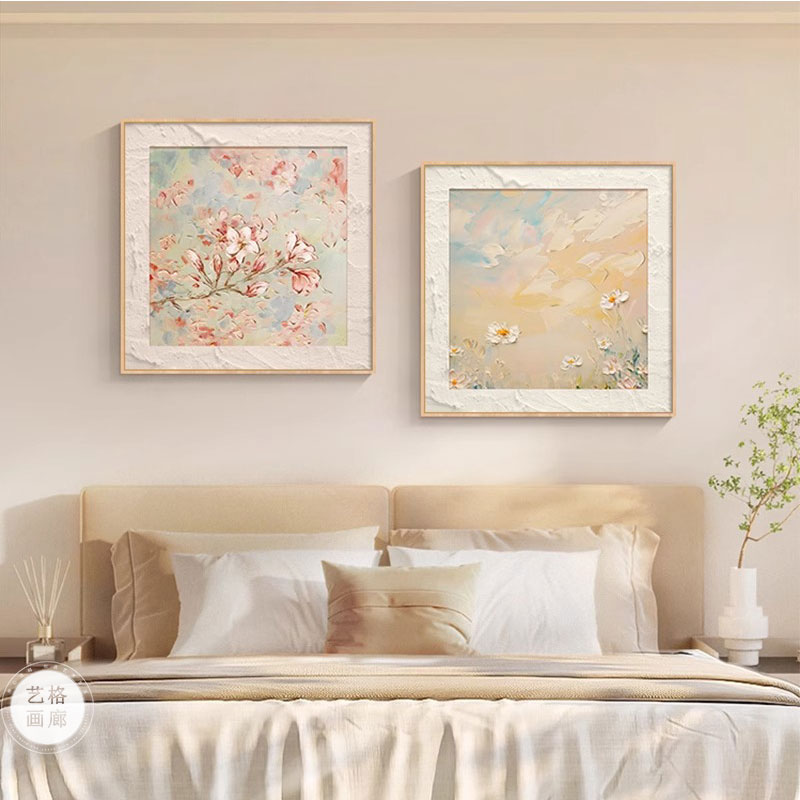 奶油风卧室床头装饰画抽象肌理感花卉主卧房间墙壁画客厅摆画挂画