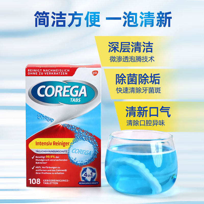 Corega德国假牙泡腾片清洁片义齿正畸保持器隐形牙套除菌去牙菌斑