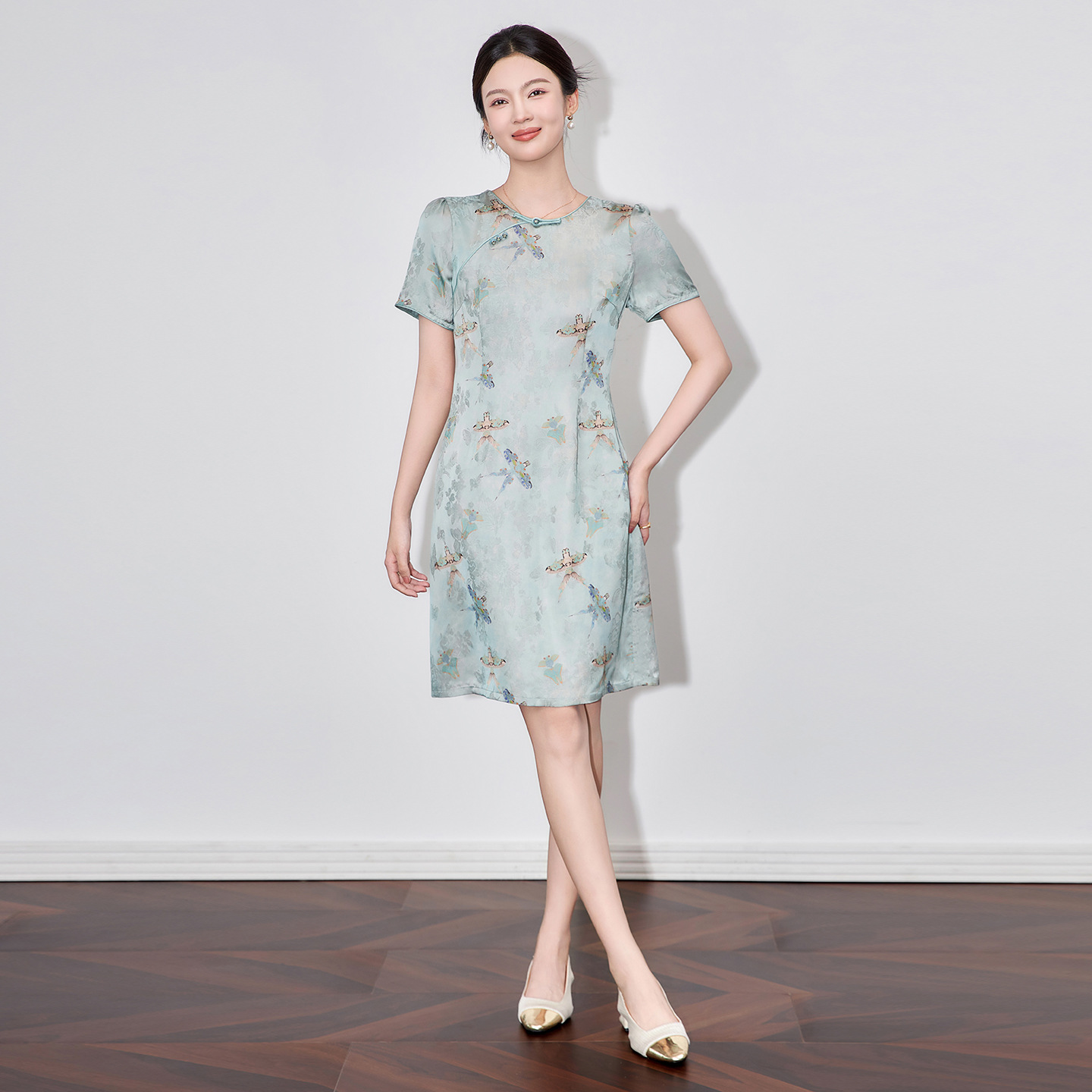 2025夏季新款女装复古国风提花改良旗袍裙气质雅致显瘦收腰连衣裙