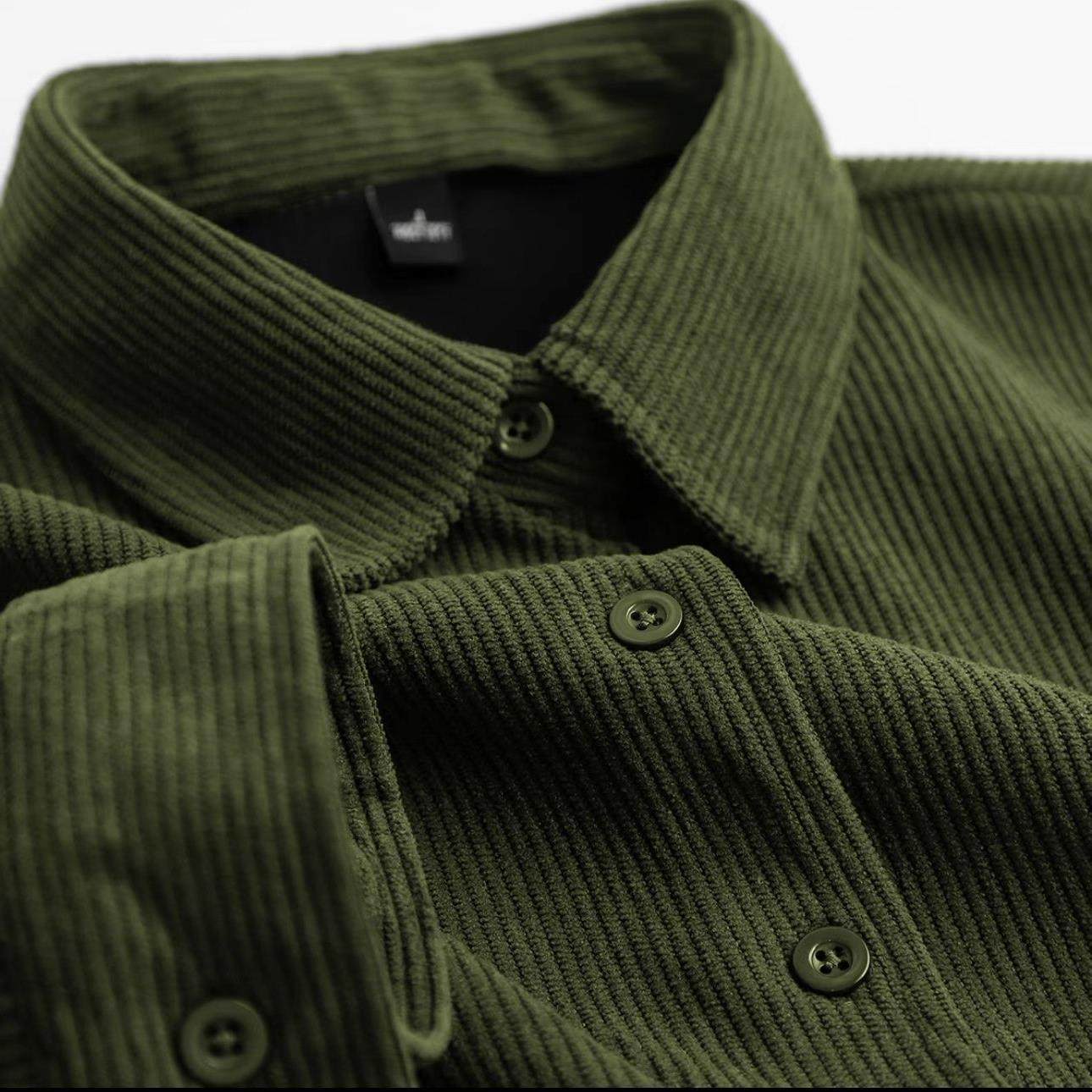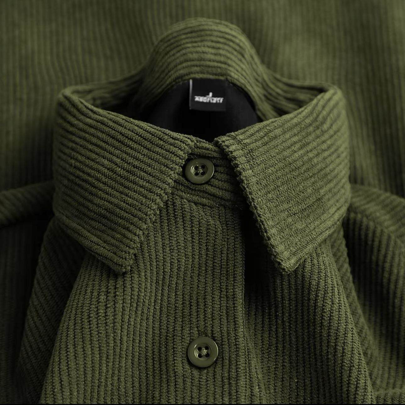 气质复古绿色灯芯绒衬衫女法式叠穿内搭条纹衬衣外套宽松长袖上衣