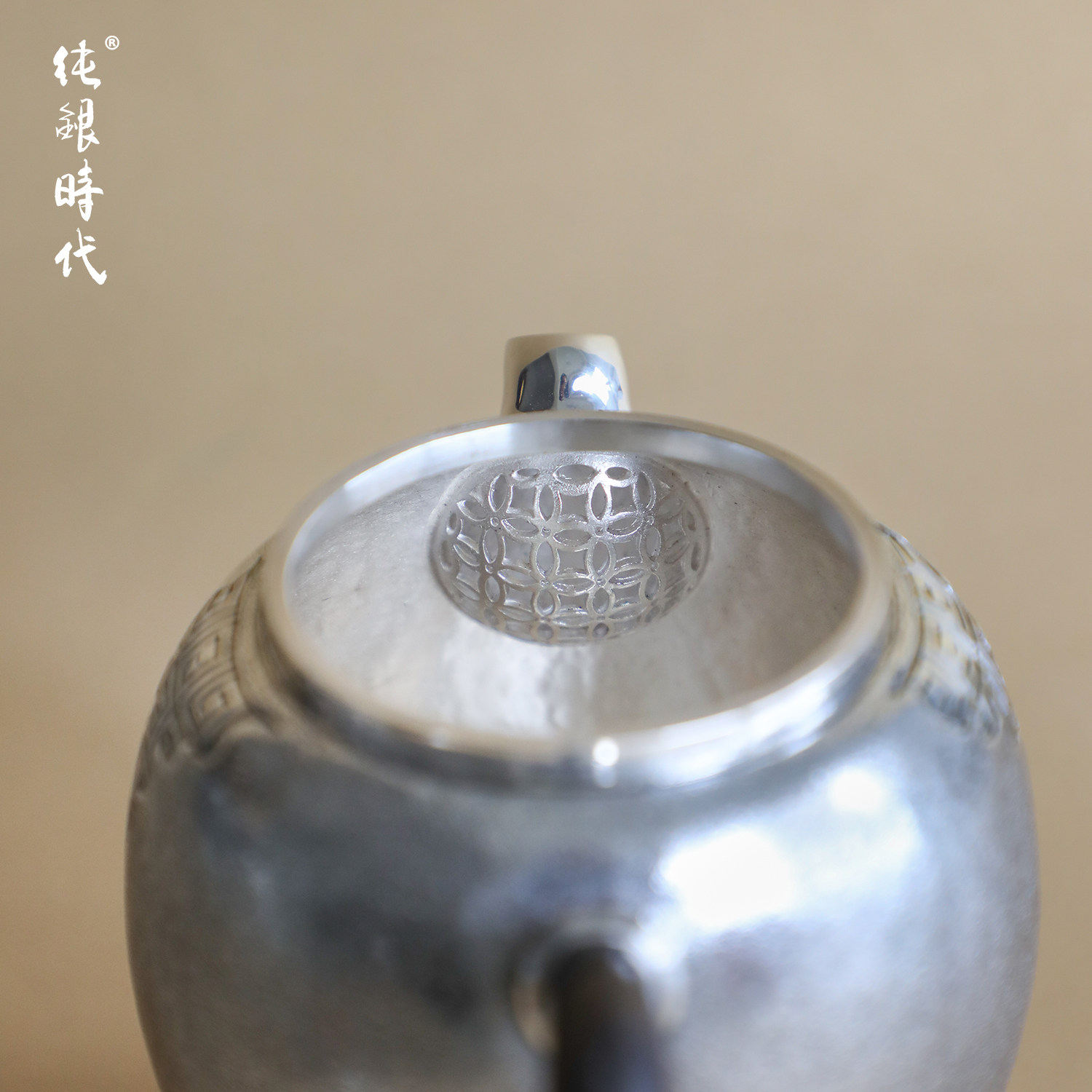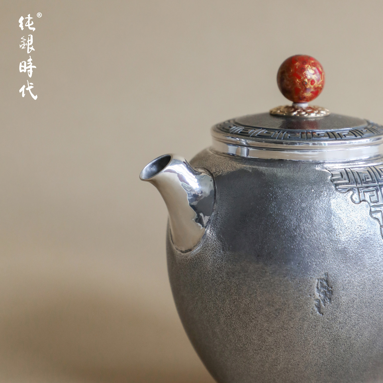 纯银时代回纹纯银泡茶壶