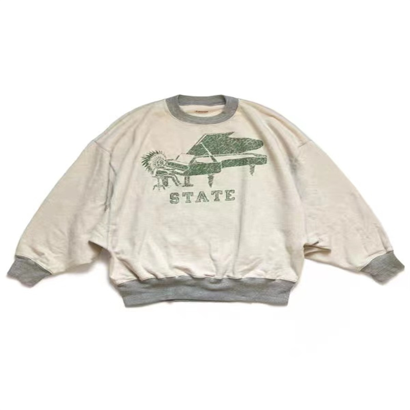 20AW KAPITAL 平田和宏 余文乐同款 裹毛蝙蝠袖纯棉印花圆领卫衣