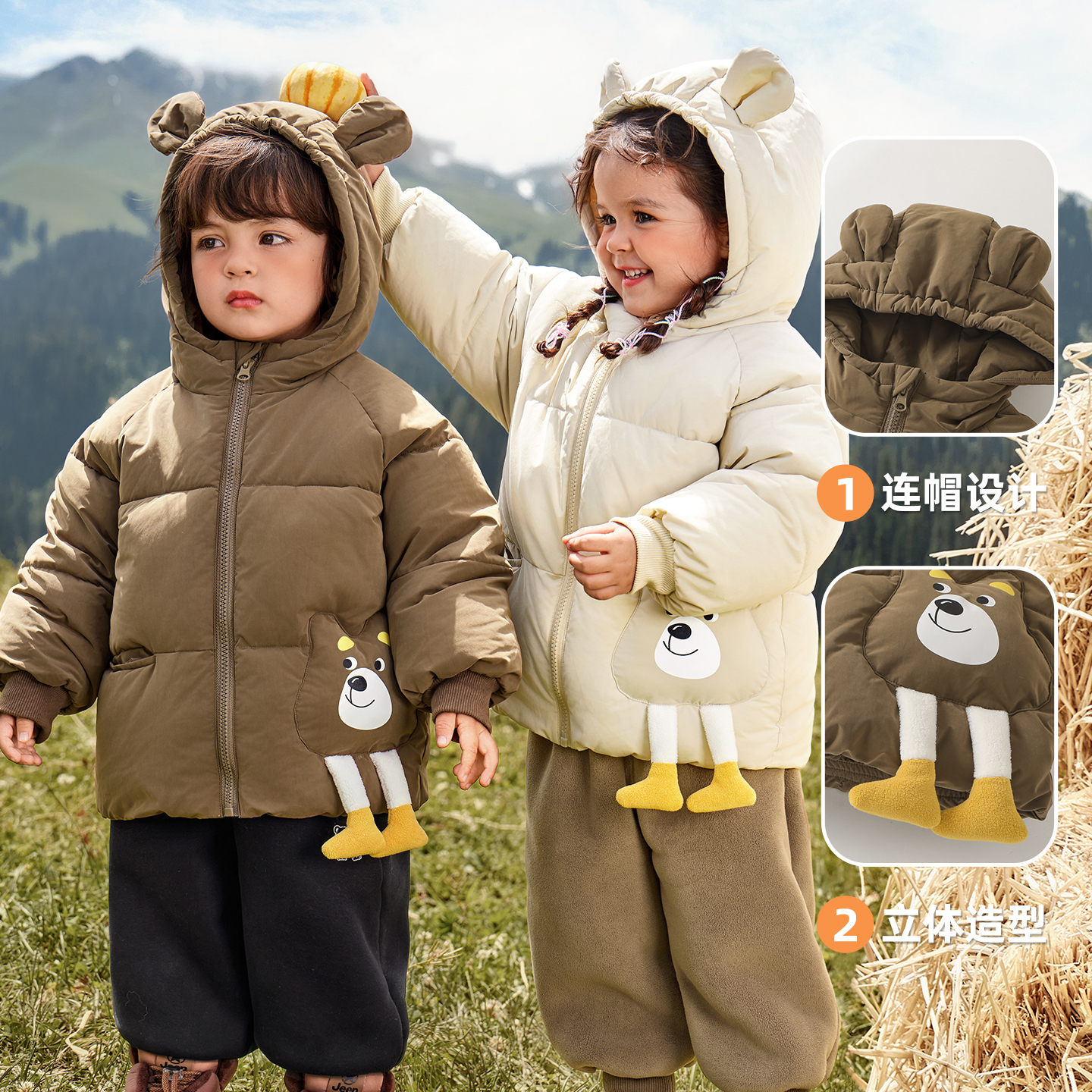 咔咔熊猫儿童宝宝棉袄冬季立体卡通连帽棉服男童女童休闲冬装外套