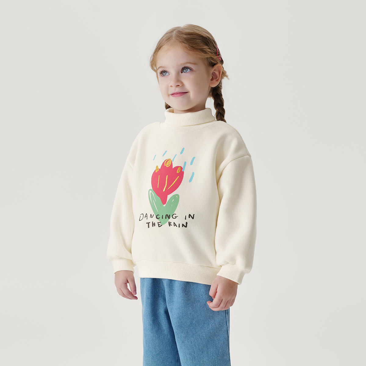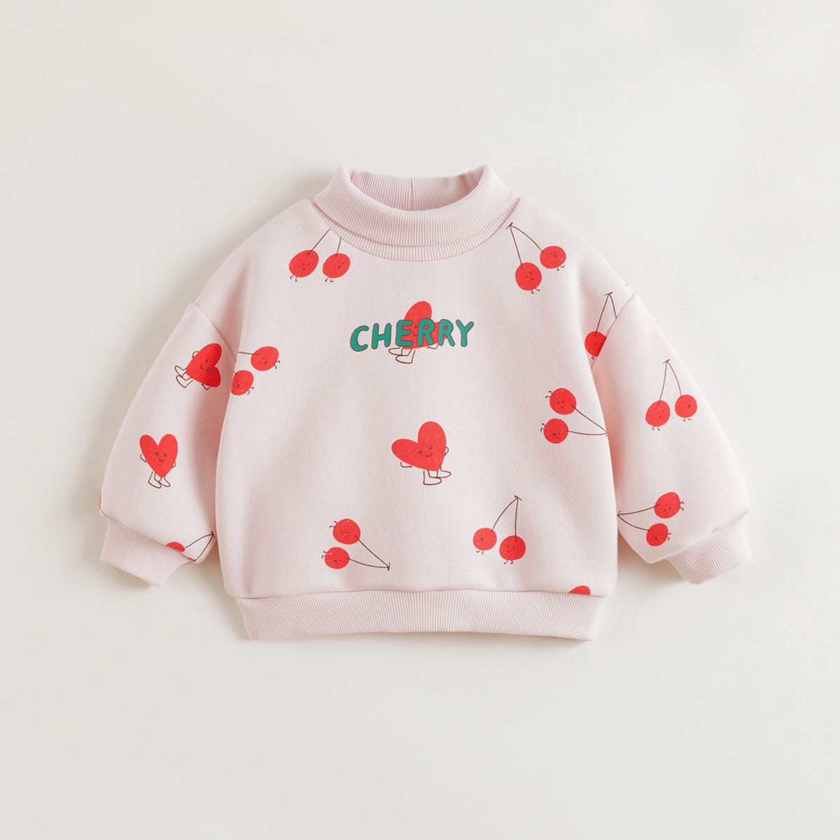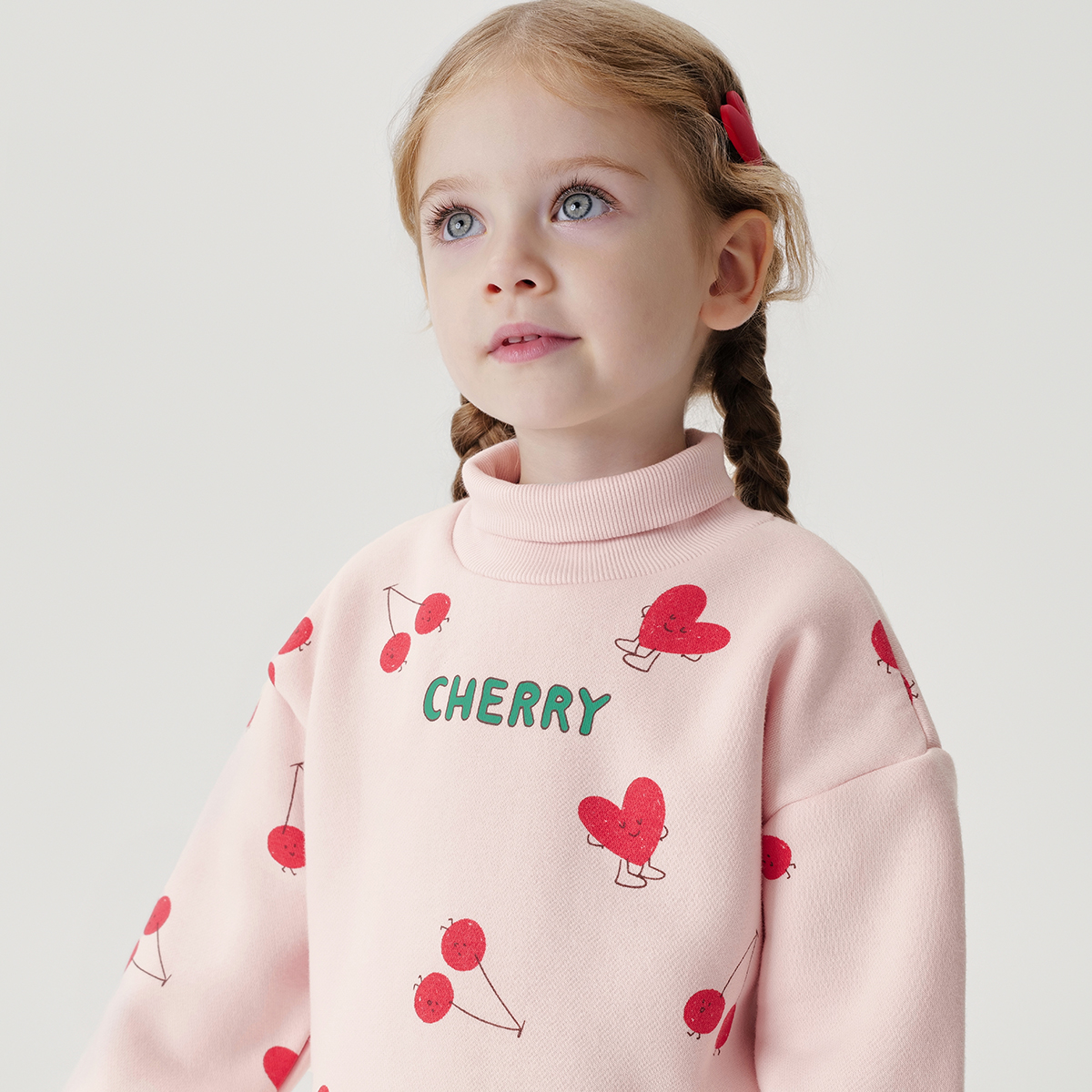 【加绒】马克珍妮女童小樱桃印花高领卫衣宝宝上衣冬装新款240975