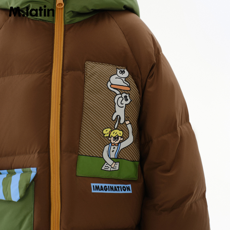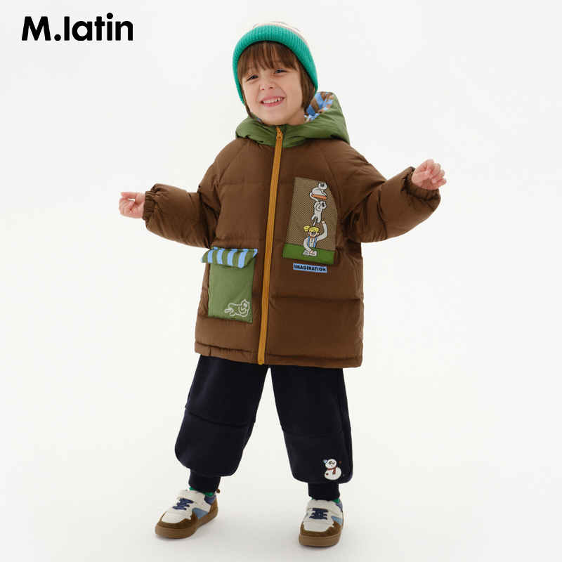 马拉丁童装儿童羽绒服冬装新款男女小童印花轻暖舒适中长羽绒服