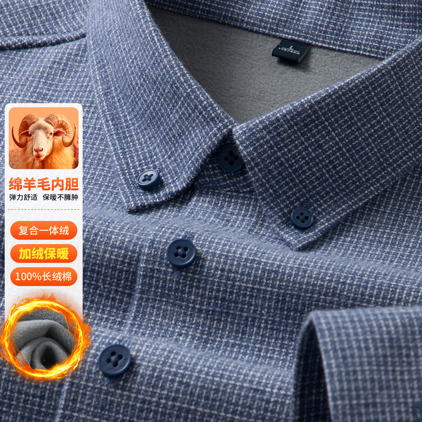 2025冬季男士纯棉长袖衬衫休闲磨毛加绒加厚保暖衬衣上衣外套男款