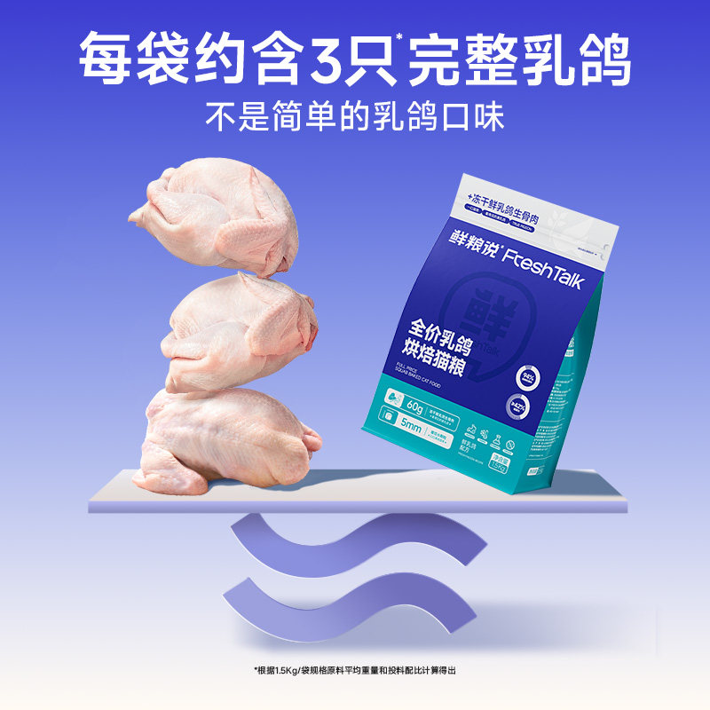 鲜粮说成幼宠物猫全价无谷乳鸽主食生骨肉低敏冻干烘焙猫粮