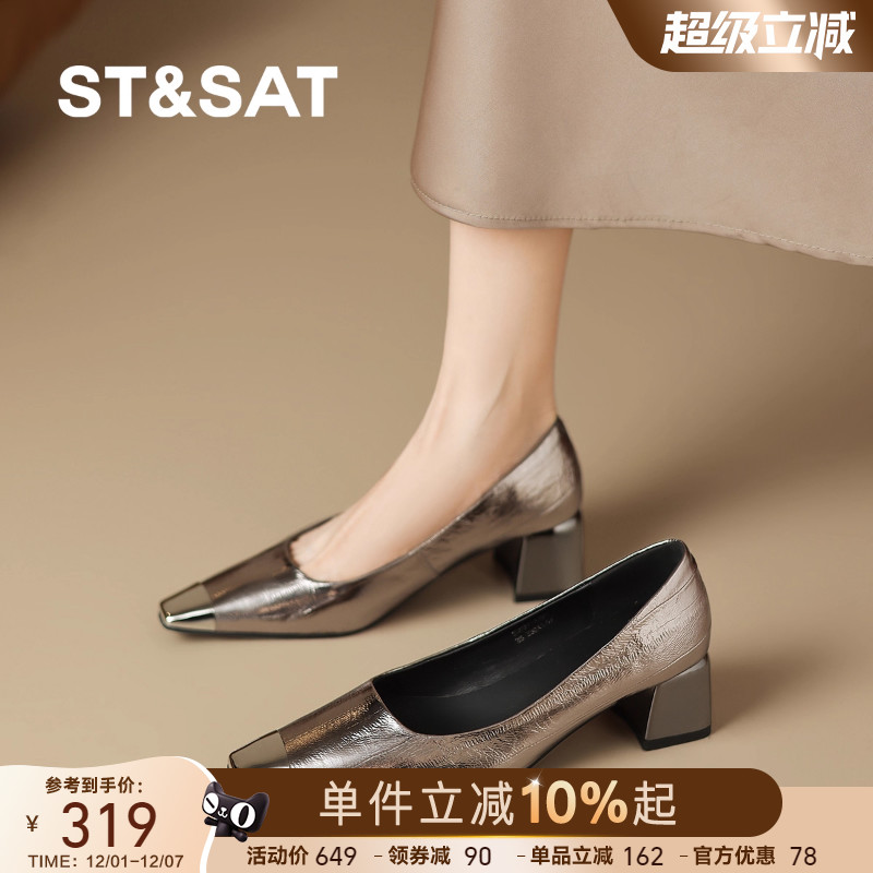 星期六2025秋季新款气质浅口单鞋女软底粗跟百搭通勤小皮鞋【直】