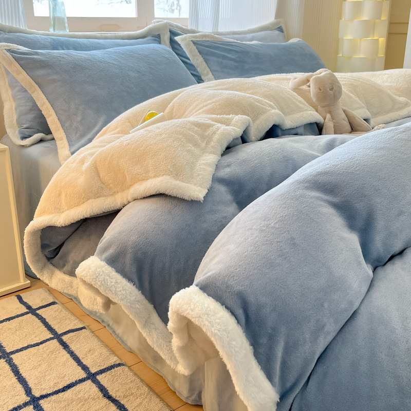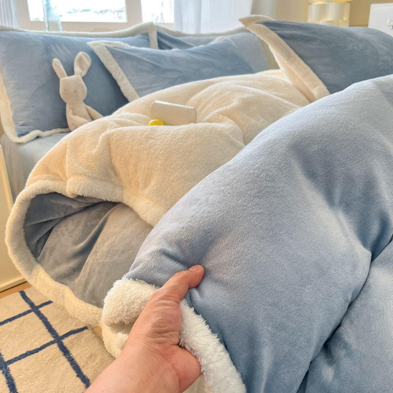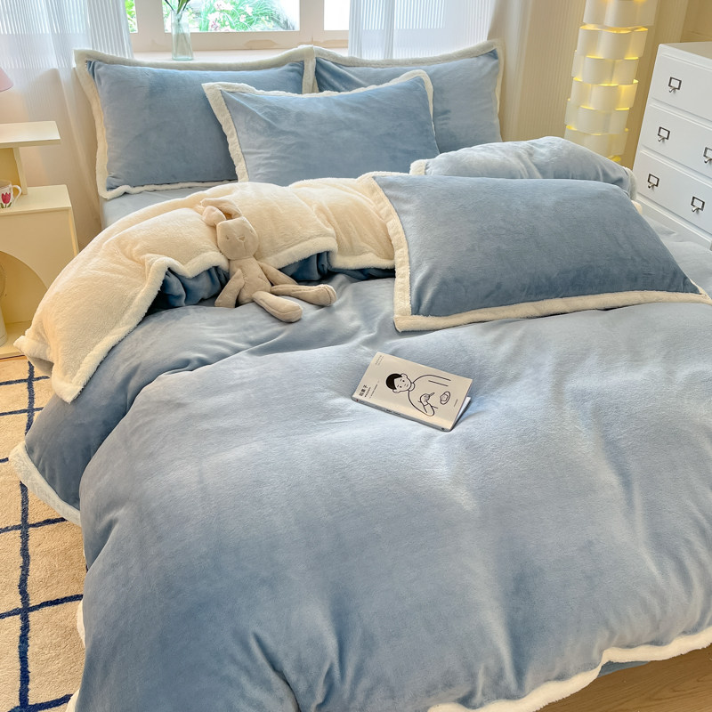 双面加厚牛奶羊羔绒被套单件180x200cm加厚保暖珊瑚绒被罩四件套3