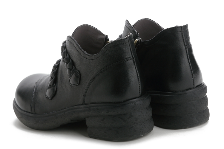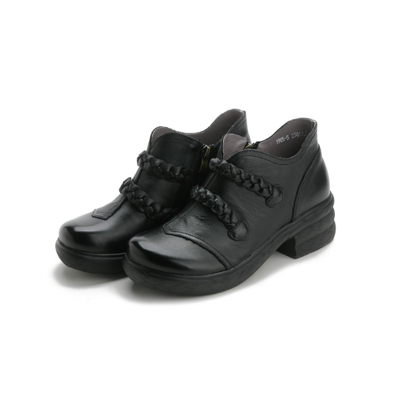 0190秋冬民族风软底真皮中粗跟单靴原创复古手工短筒马丁靴皮靴
