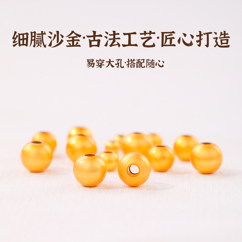 沙金珠子散珠不掉色18k金隔珠diy配件手链串珠手串配饰金色转运珠