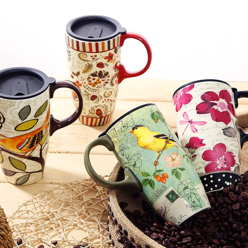 爱屋格林马克杯 创意水杯咖啡杯陶瓷杯大容量带盖杯子釉上彩500ML