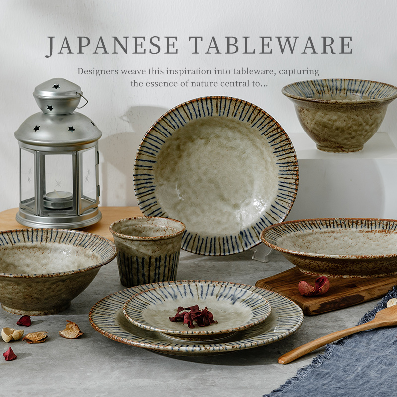 【自营】日本进口草帽碗复古陶瓷碗沙拉碗粗陶侘寂风餐具釉下盘子