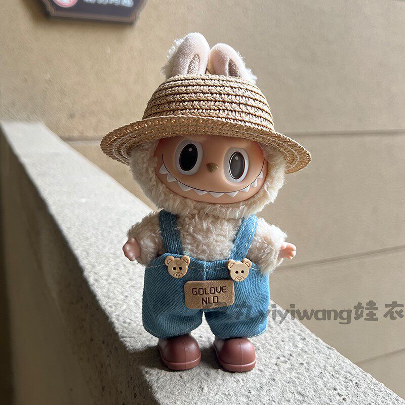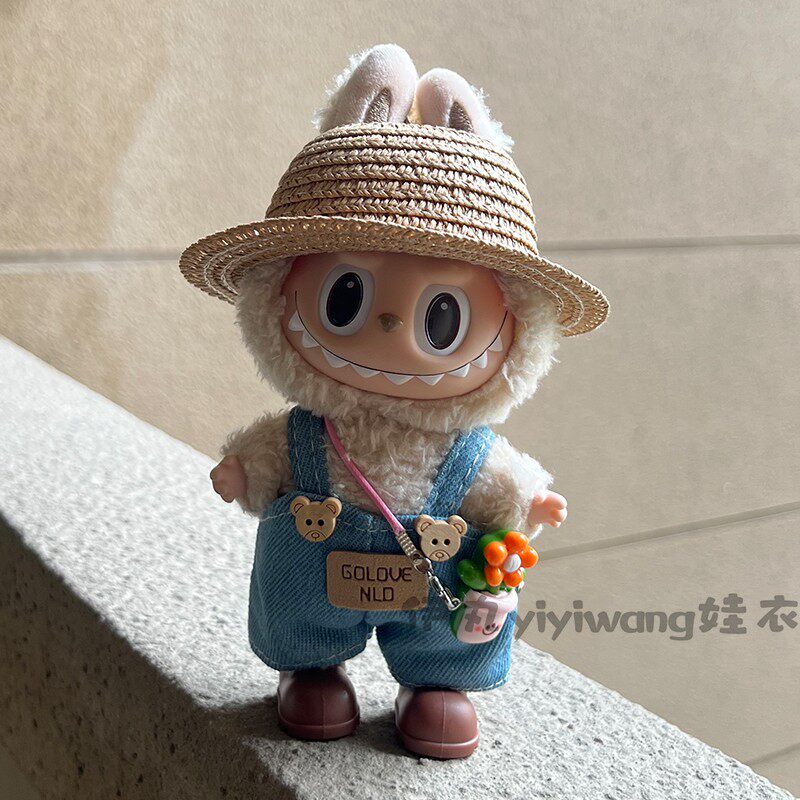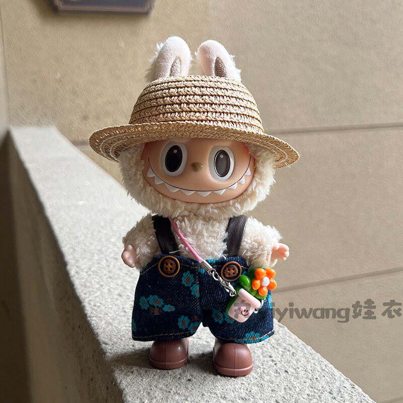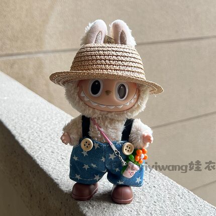 适用于拉布布搪胶挂件衣服17cmlabubu背带裤草帽鞋子可爱娃衣着替