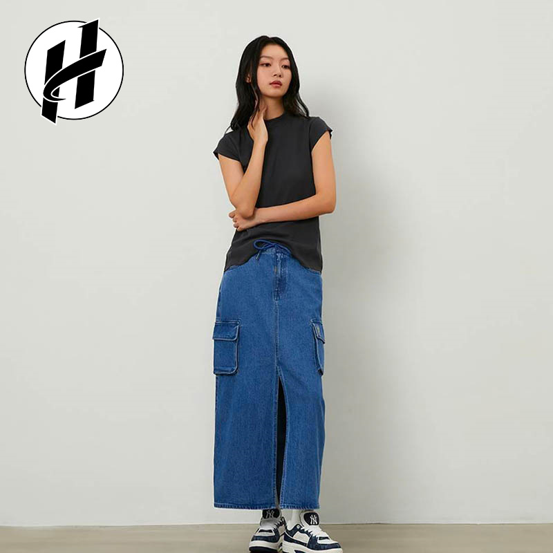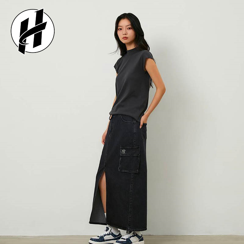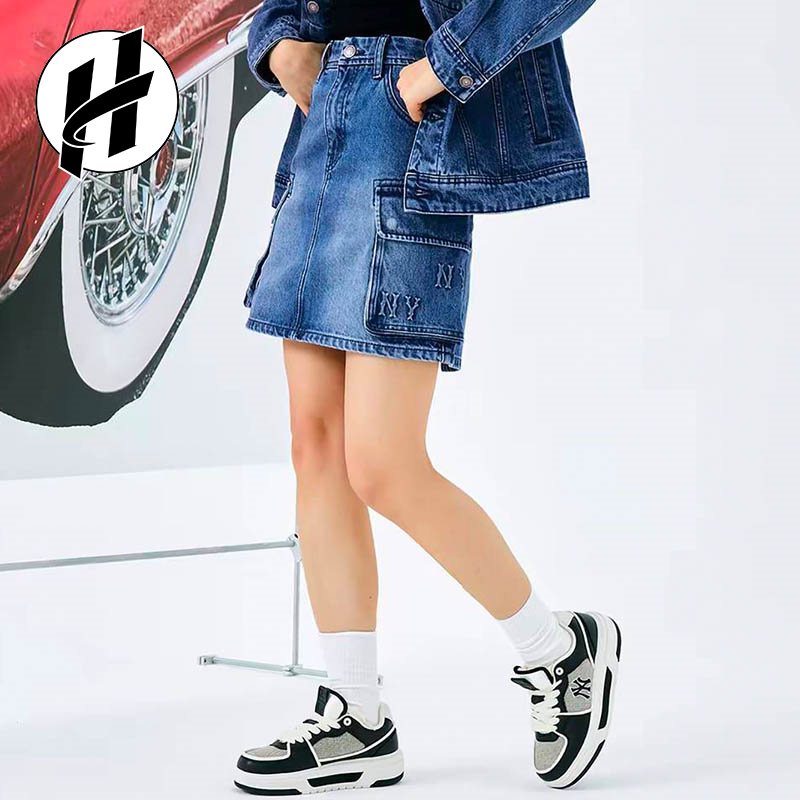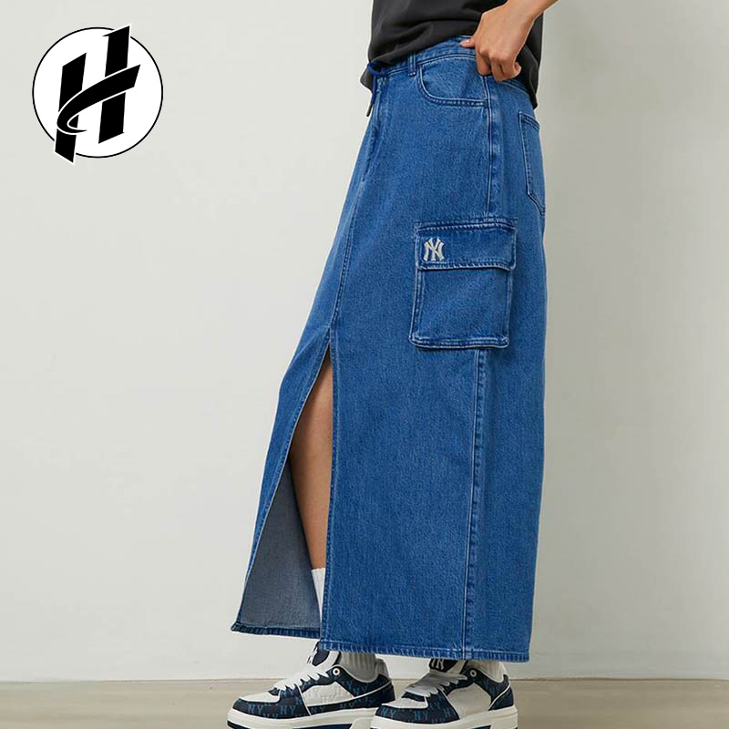 MLB 老花系列纽约洋基队辣妹包臀裙渐变压花牛仔短裙女款