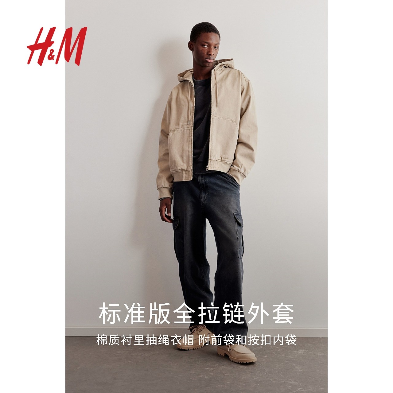 HM男装女装夹克冬季工装巴恩风底特律抽绳连帽拉链外套1230711