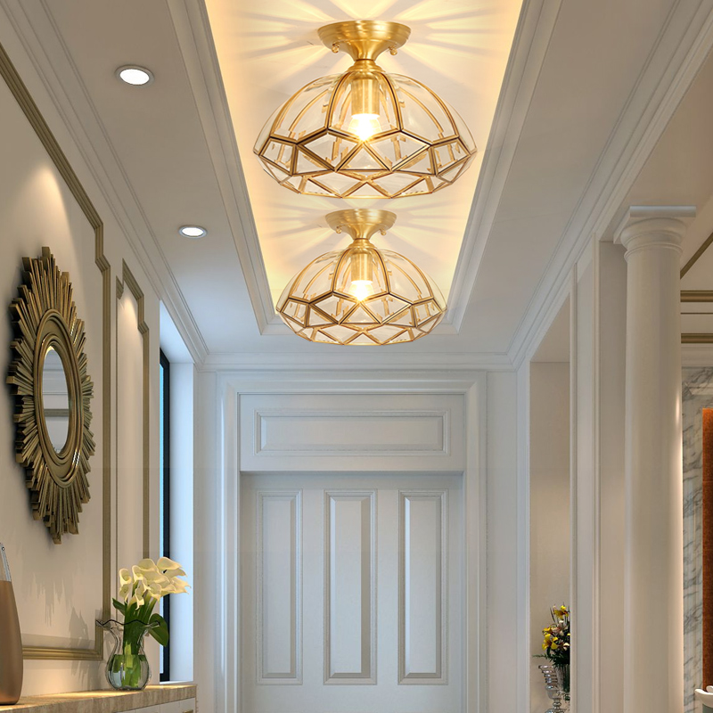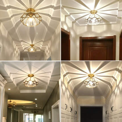 玄关过道走廊灯入户灯美式全铜小吸顶灯北欧现代简约衣帽间阳台灯