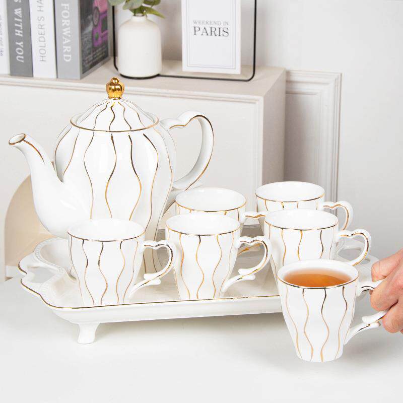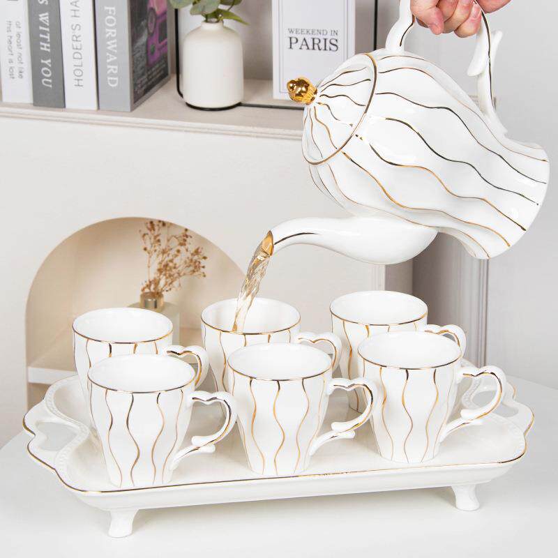 陶瓷杯具大容量家用水杯套装客厅待客茶杯转盘新年企业礼品盒