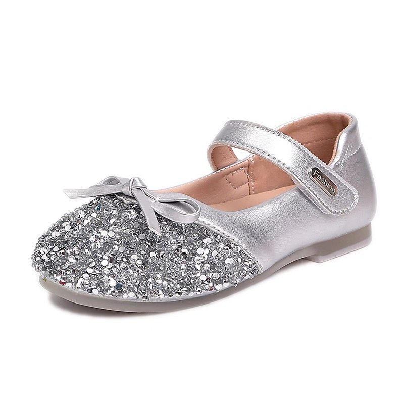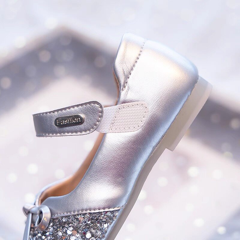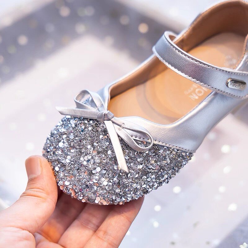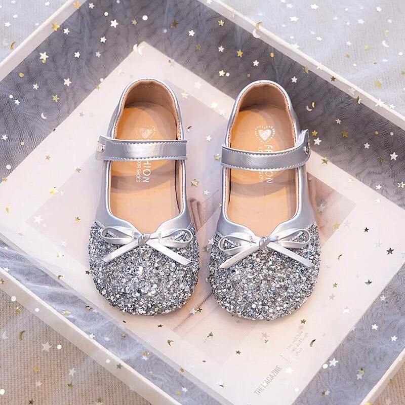 公主鞋女童艾莎鞋子2026新款儿童皮鞋宝宝银色水晶鞋单鞋秋季软底