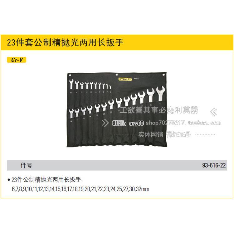 STANLEY/史丹利 23件套公制精抛光两用长扳手93-616-22 扳手组套