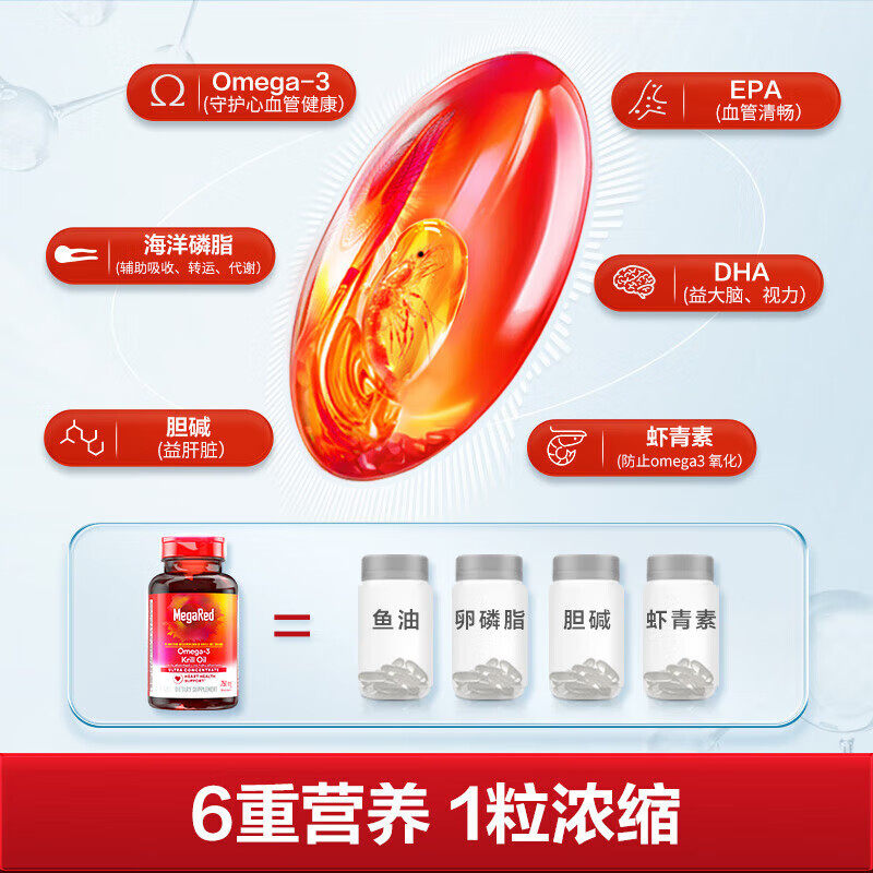 MegaRed脉拓南极磷虾油软胶囊深海鱼油omega-3辅助降血脂鱼油胶囊
