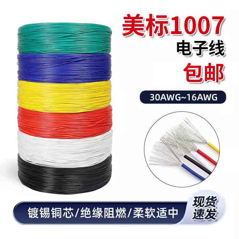 美标1007电子线镀锡铜芯LED环保单芯多股引线线路板焊锡连接导线