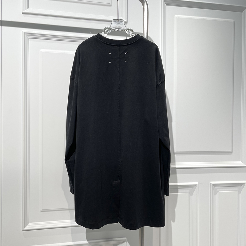 休闲风百搭时尚开叉长袖中长T恤