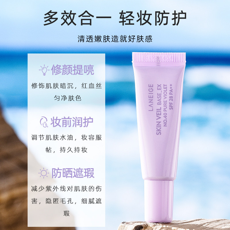 兰芝雪纱隔离霜妆前乳丝柔 40号紫色10ml小样 提亮遮瑕防晒二合一