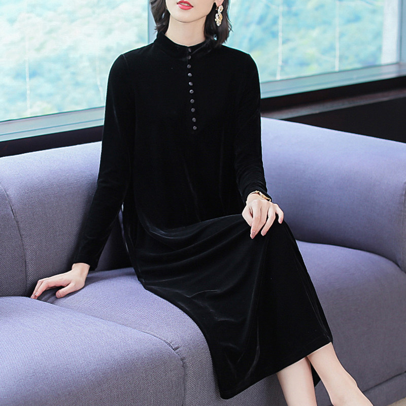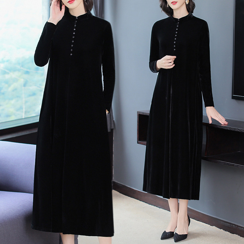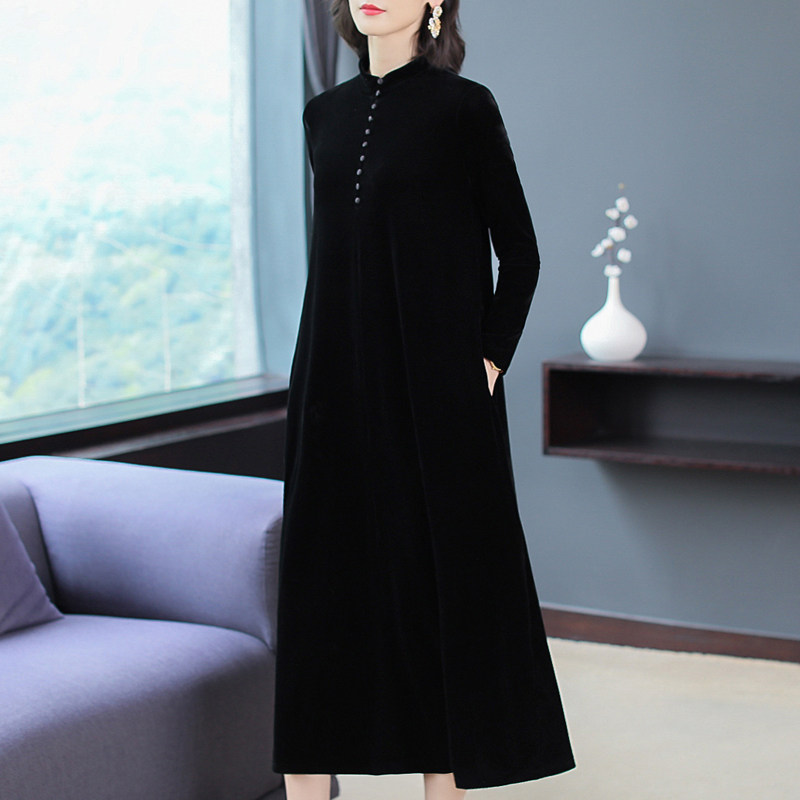 新中式女装大码2025秋冬新款高端气质遮肚丝绒连衣裙中国风旗袍裙