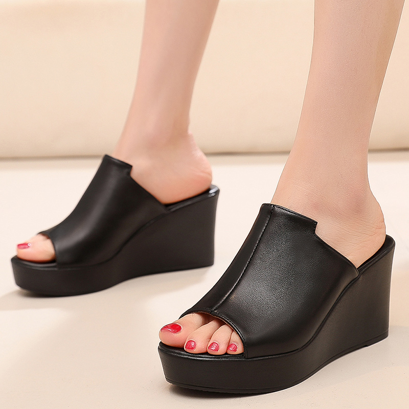 绿色舒适外穿坡跟拖鞋女夏时尚高跟防水台厚底松糕凉拖中跟一字拖