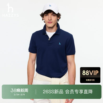 【商场同款】Hazzys哈吉斯吸湿速干短袖POLO衫2026夏季新款T恤男