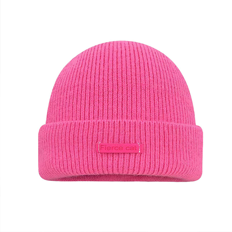 新款韩系ins纯色字母针织帽女冬季加厚保暖百搭显脸小毛线包头帽