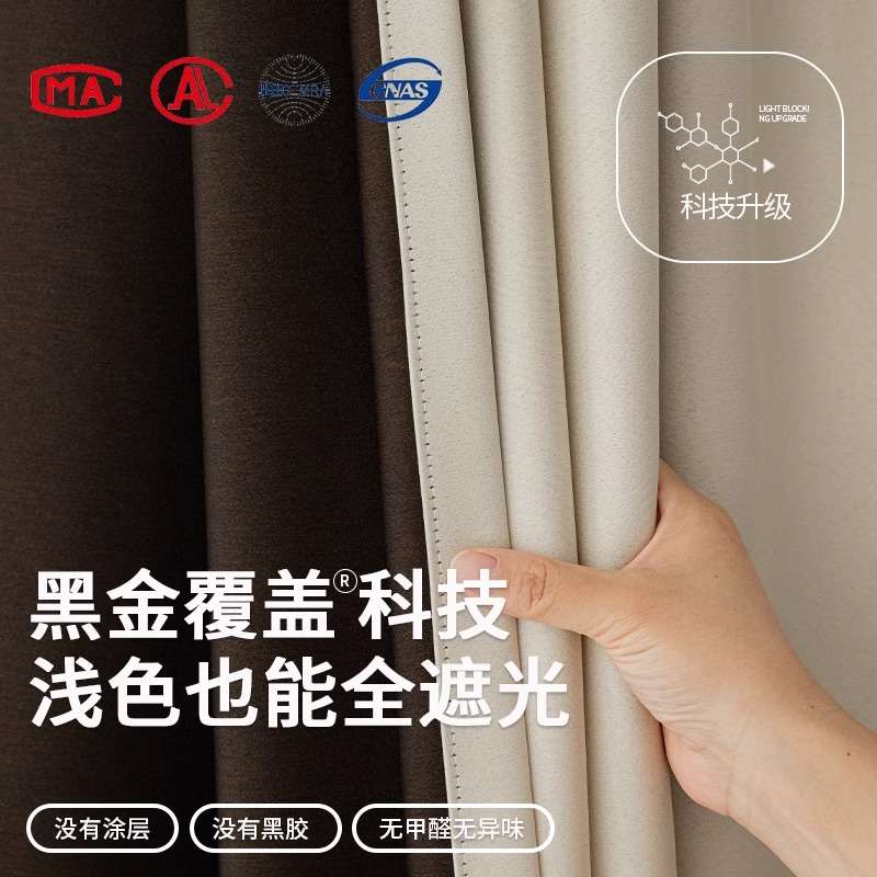 卧室窗帘全遮光2025新款客厅加厚隔音飘窗免打孔安装高级布挂钩式