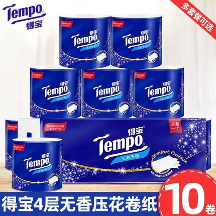 Tempo得宝卷纸有芯卷筒纸4层160g无香家庭装厕所纸厕纸手纸卫生纸