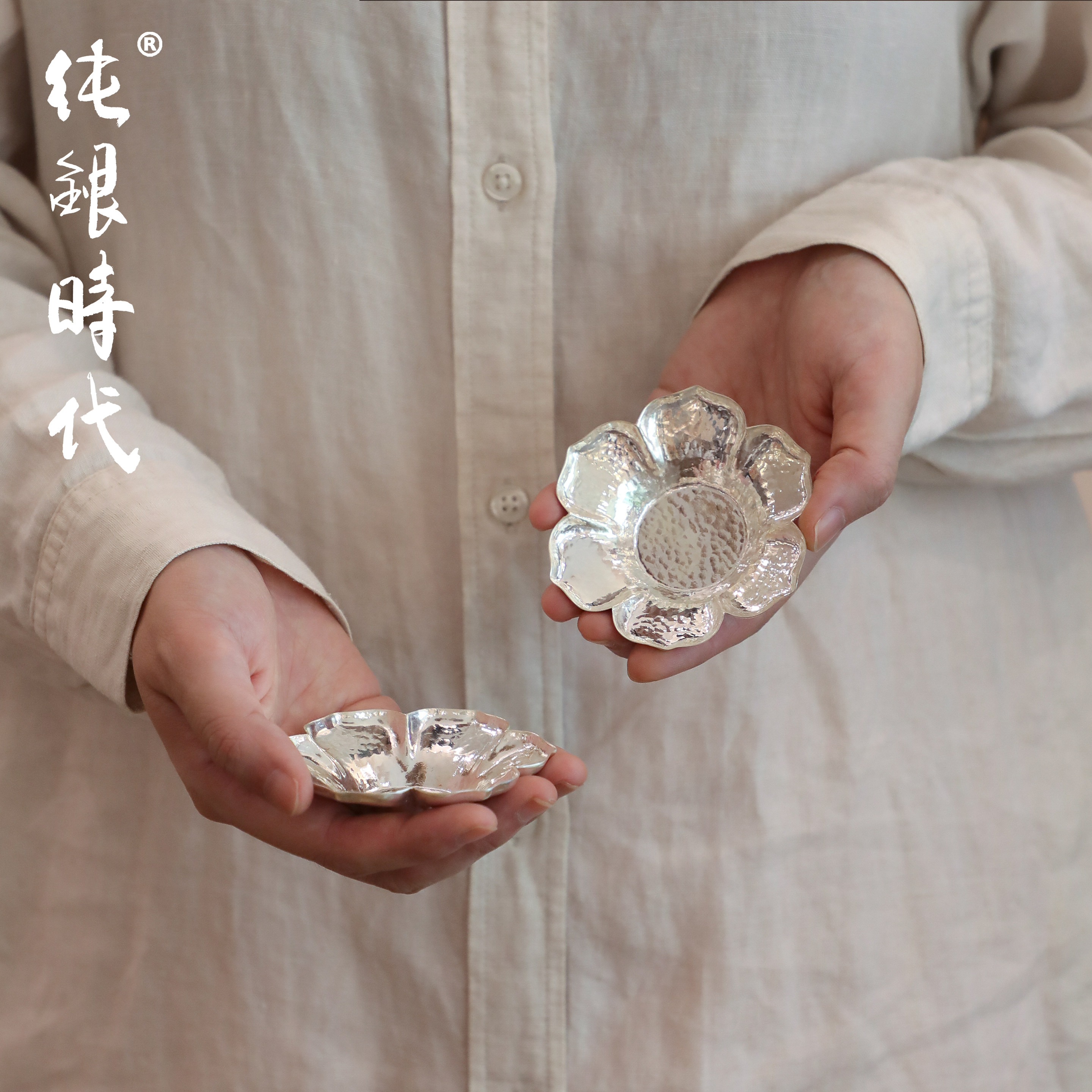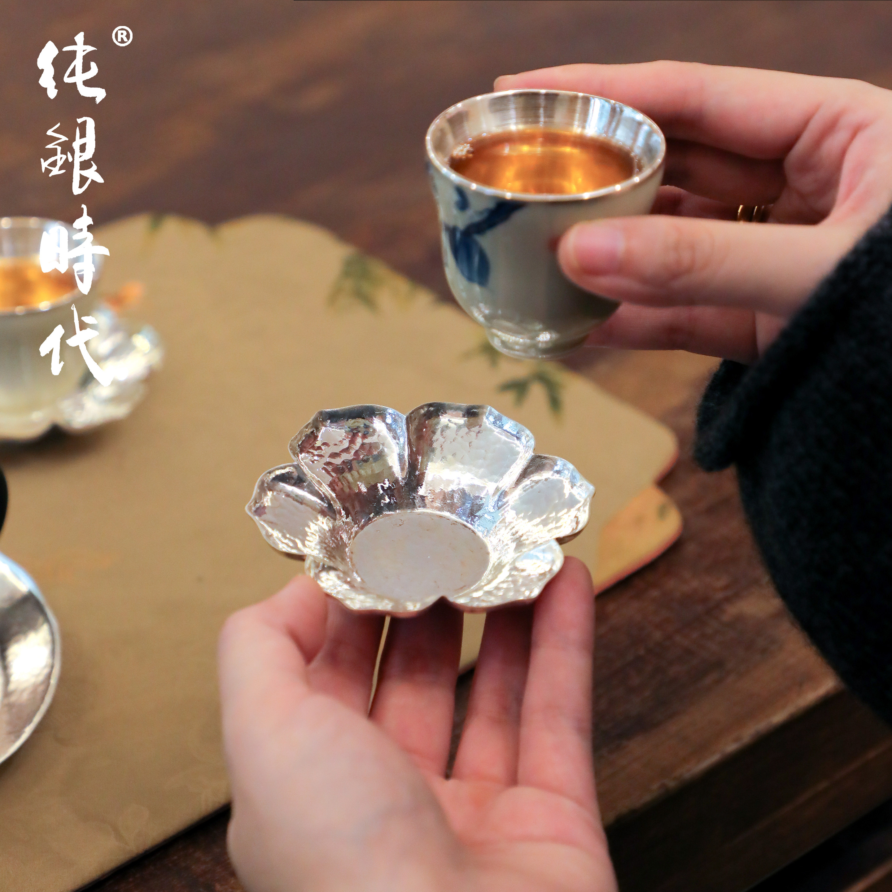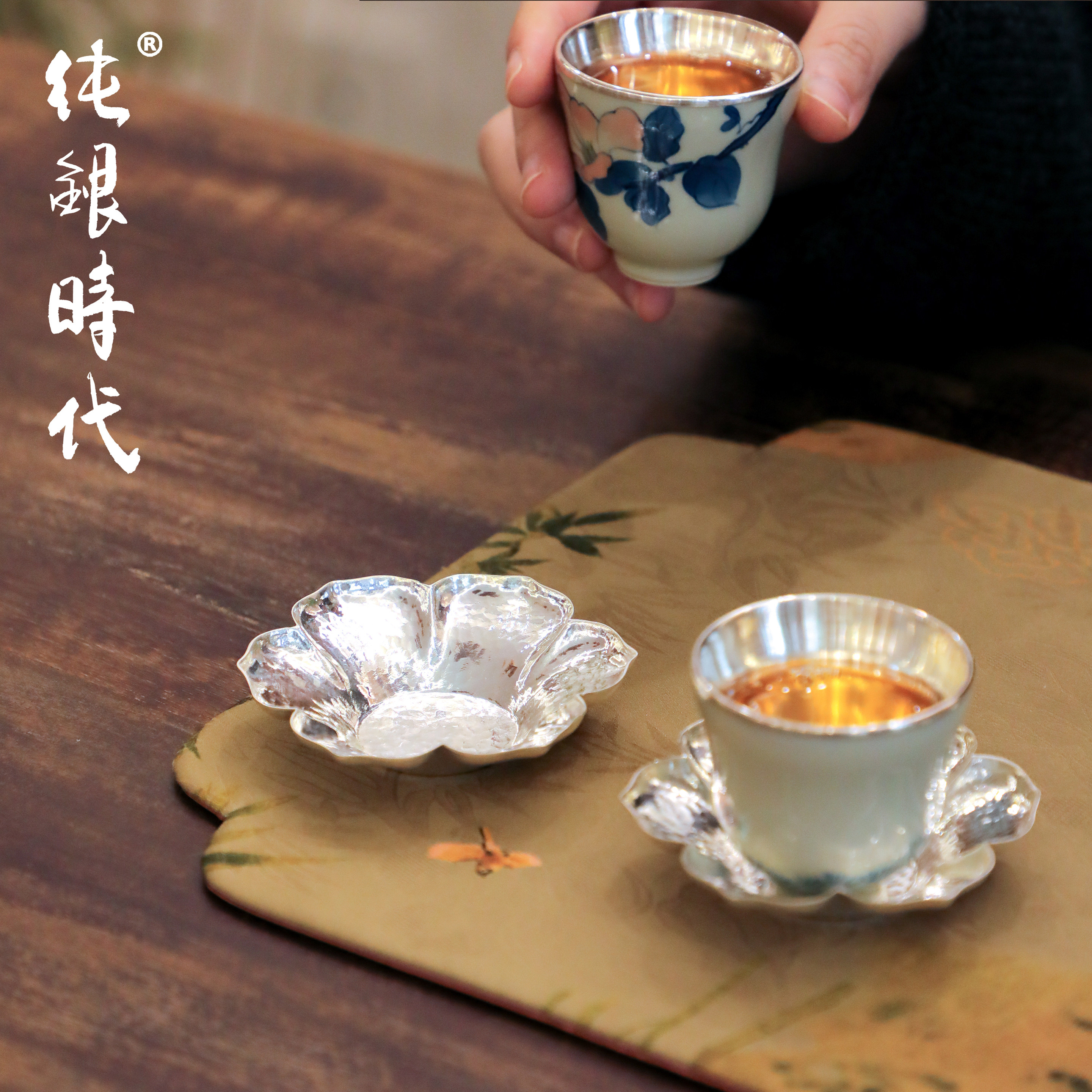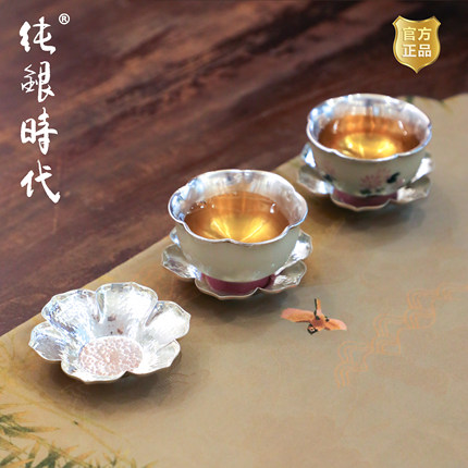 纯银时代纯银手工茶托杯托
