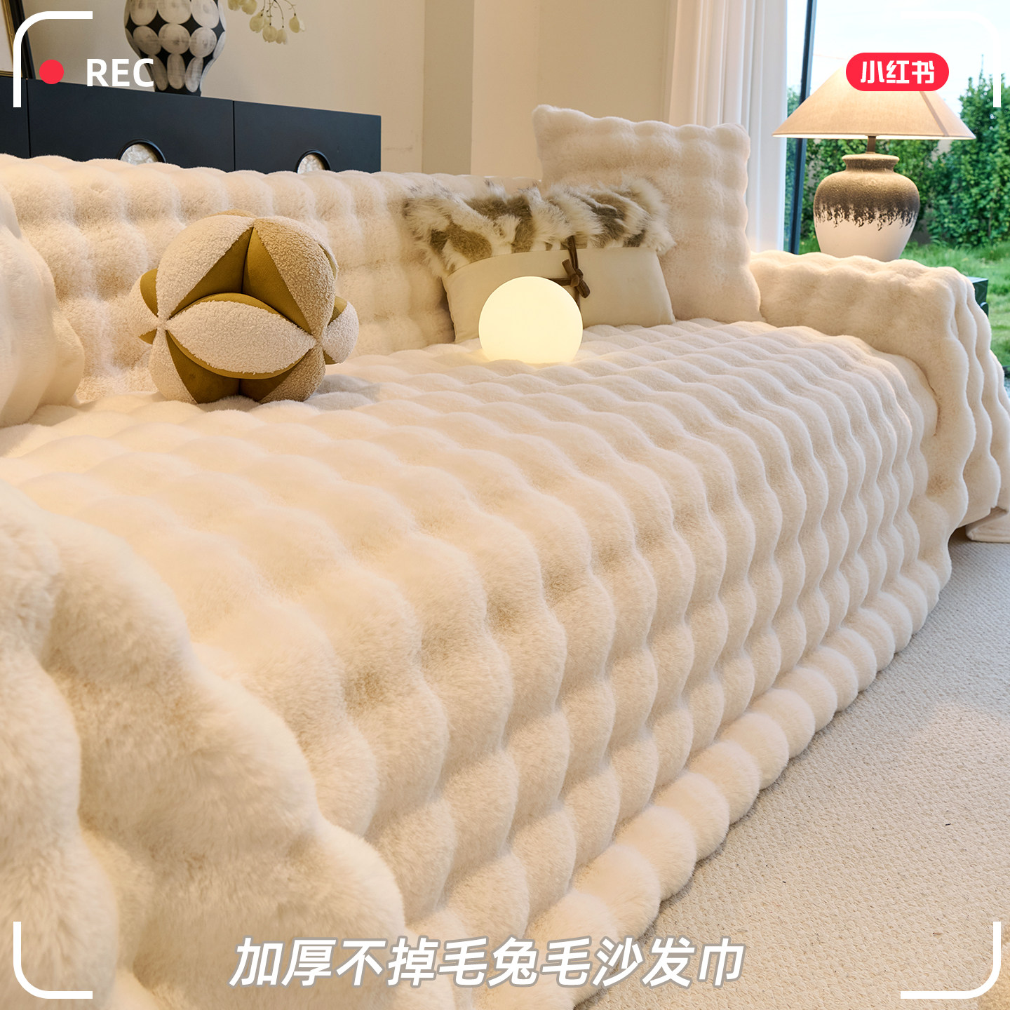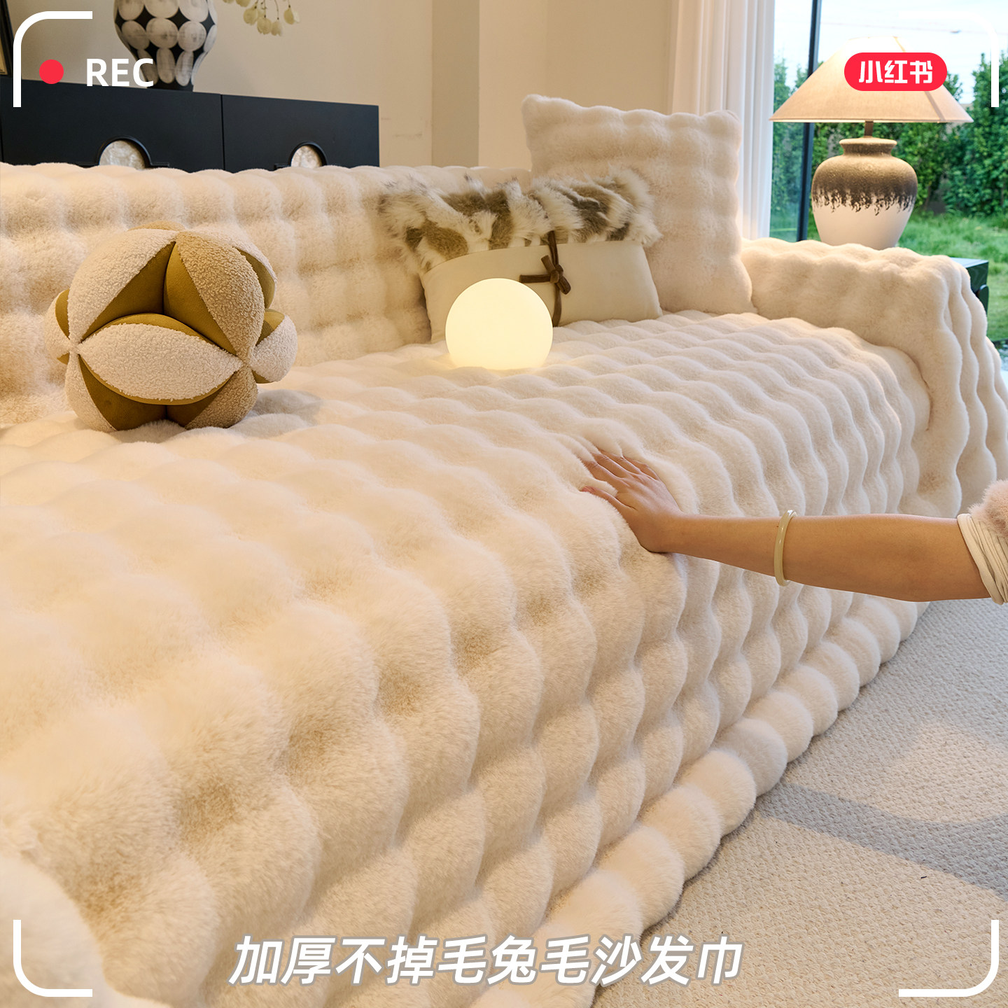 奶油风2025新款兔毛绒网红沙发盖布巾防滑沙发套罩防猫抓坐垫毯子