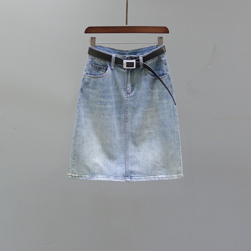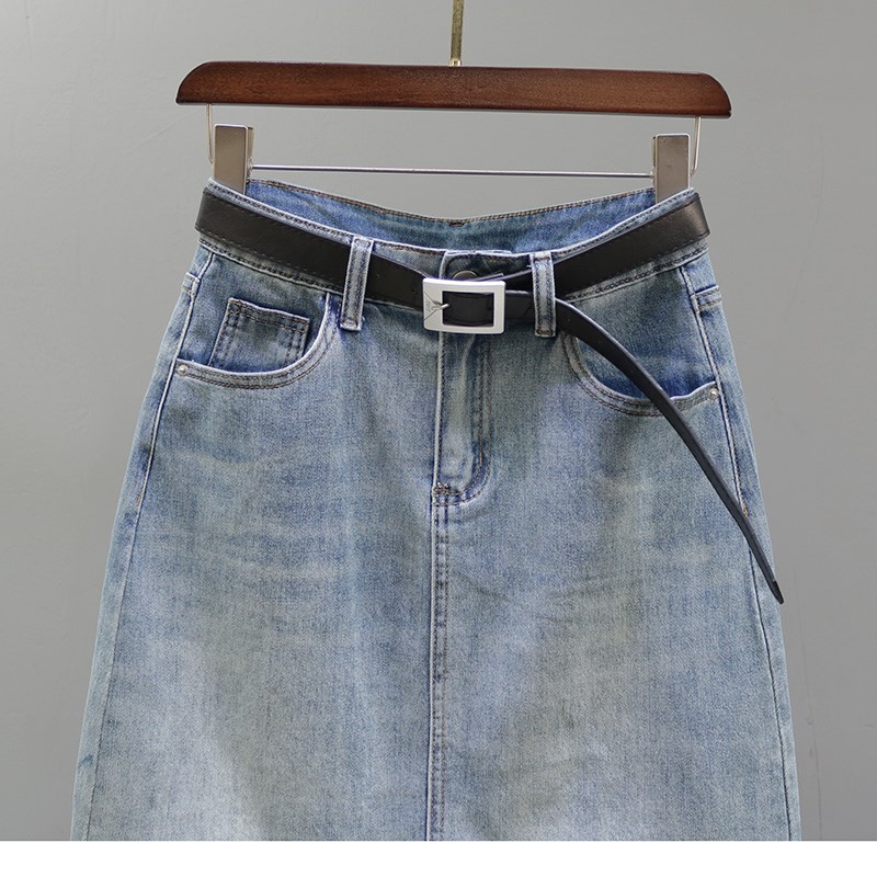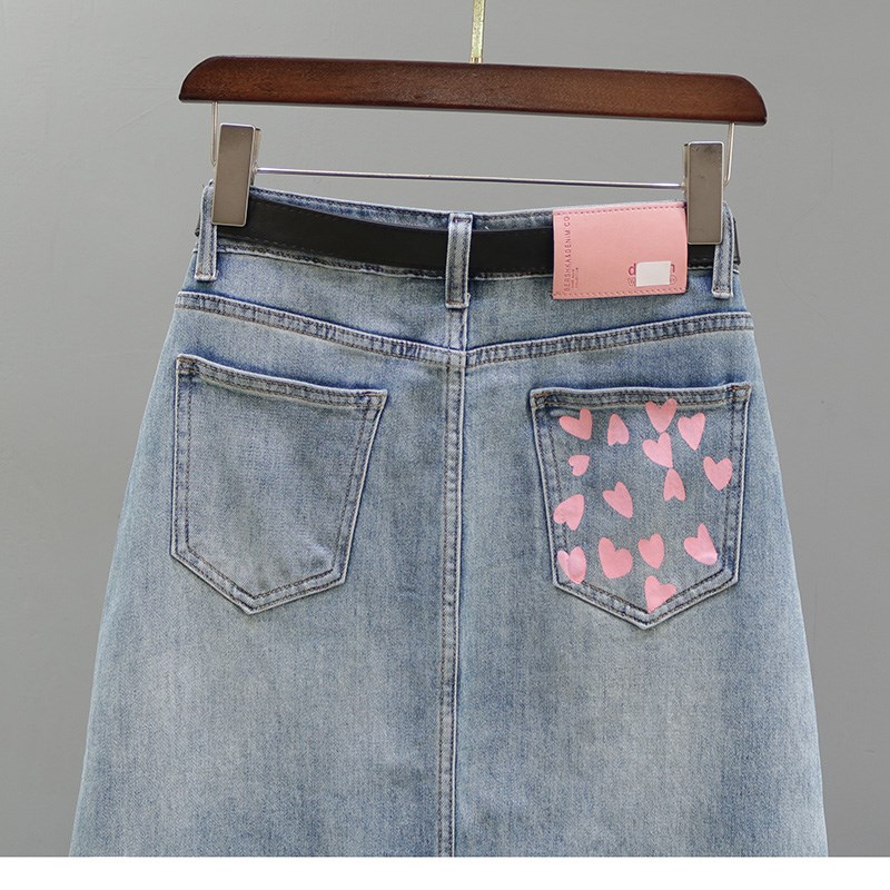2024夏季新款高腰牛仔半身裙女欧货复古印花休闲中长款包臀A字裙